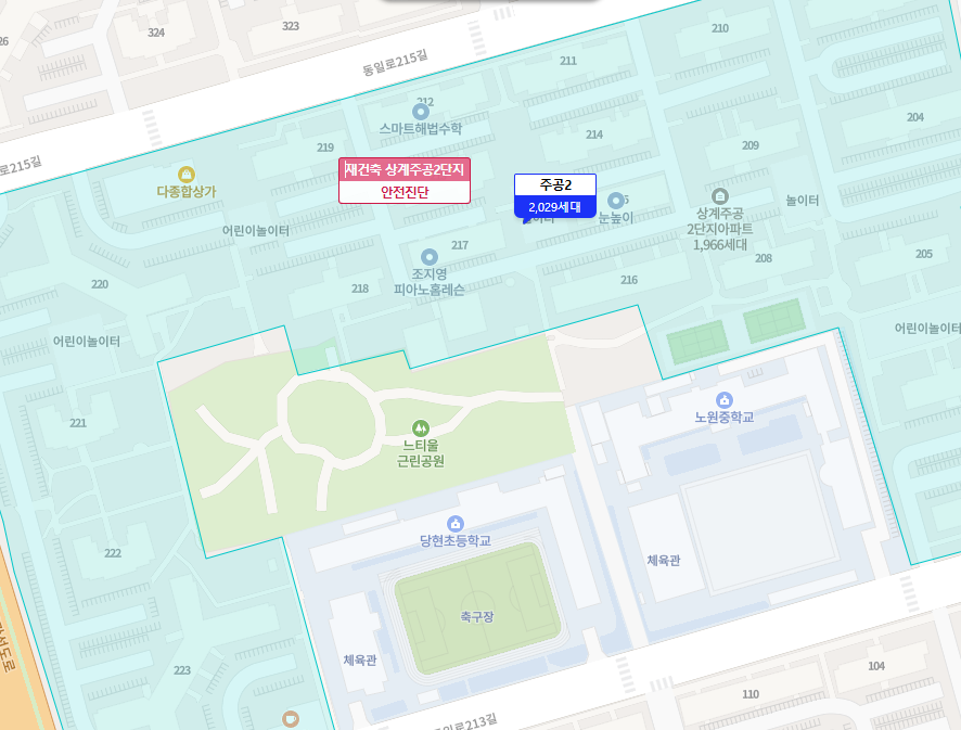 자연환경 또한 좋은 편입니다. 불암산 자락과 가까워 녹지 접근성이 우수하며, 지역 내 공원 및 산책로가 조성되어 있어 주거환경 면에서도 높은 점수를 받을 수 있습니다. 이는 향후 재건축 시 정주 여건을 크게 개선할 수 있는 기반이 탄탄한 입지라는 점에서 중요한 투자 포인트입니다.