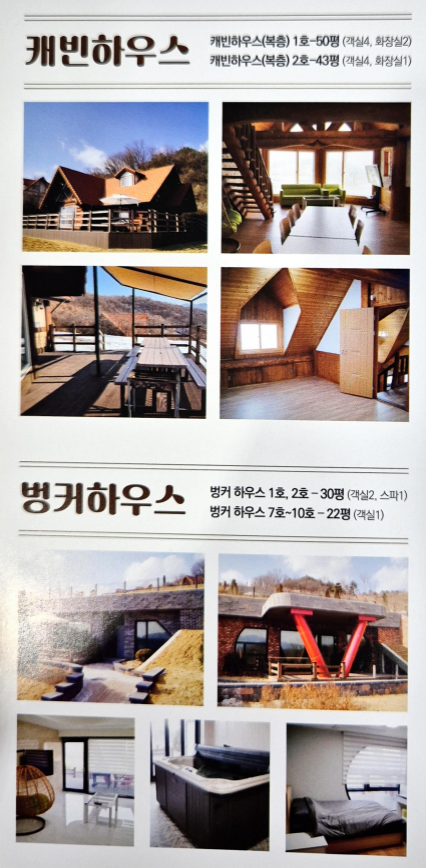 | 캐빈하우스 | 2실 | 50평/43평 | 6~8명 | 15~20명 |