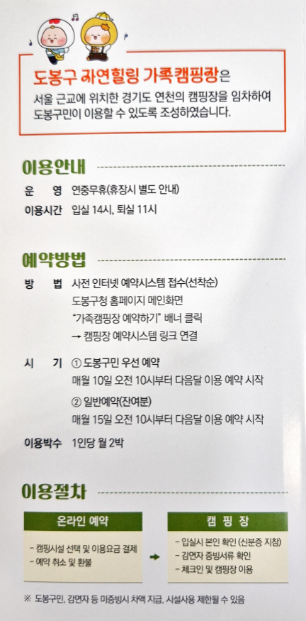 - 예약사이트: 도봉구청 캠핑장 예약 페이지