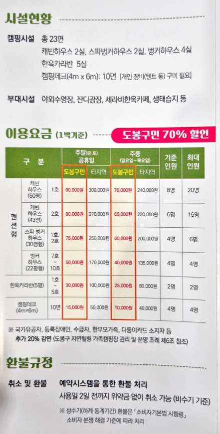 📢 도봉 자연힐링 가족캠핑장 홍보 안내문